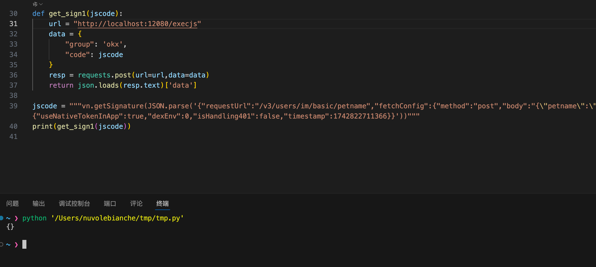 将断点下载case 3中,通过观察入参以及变量名可以知道,签名和url,请求方法(请求参数),时间戳有关。不过n和i的变量类型都是object,所以在写脚本的时候只需要注意修改requestUrl和fetchConfig,以及控制时间戳就行了,手动构造了一下js代码